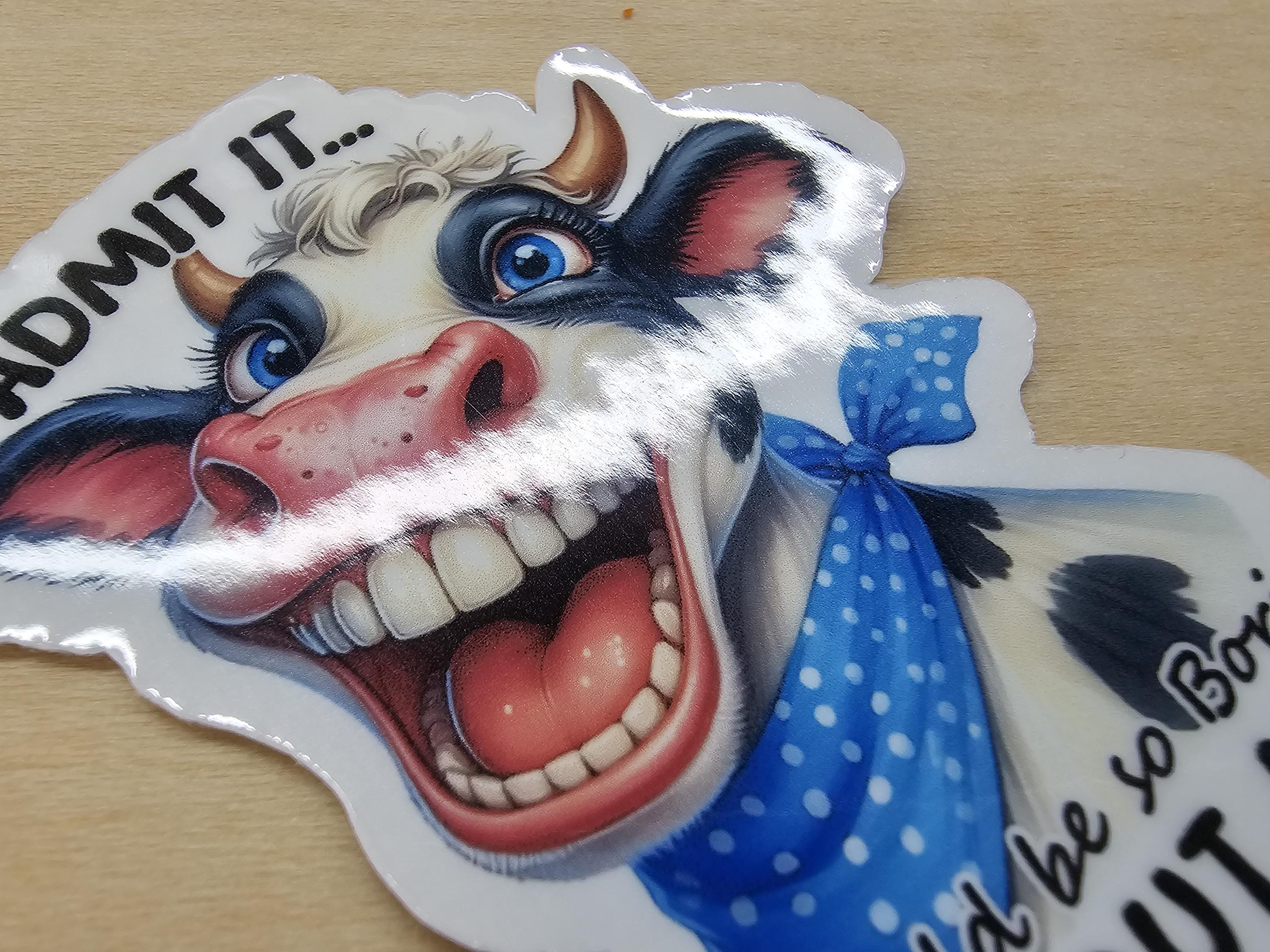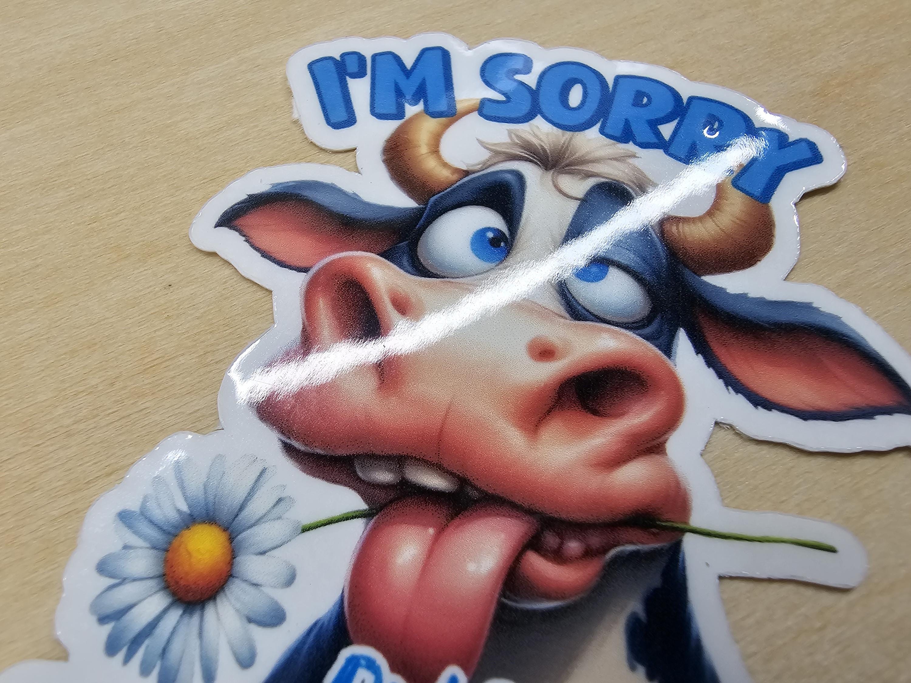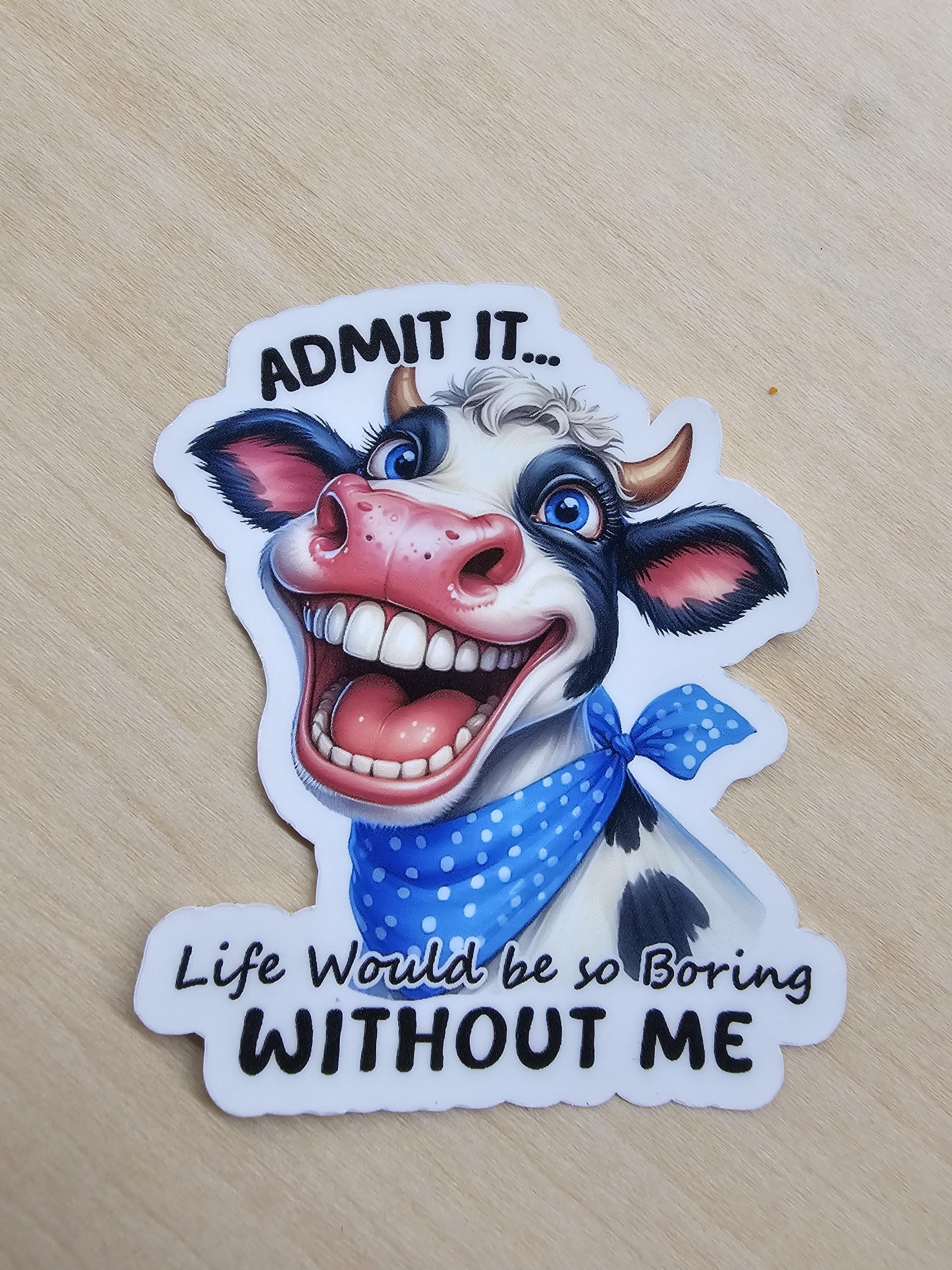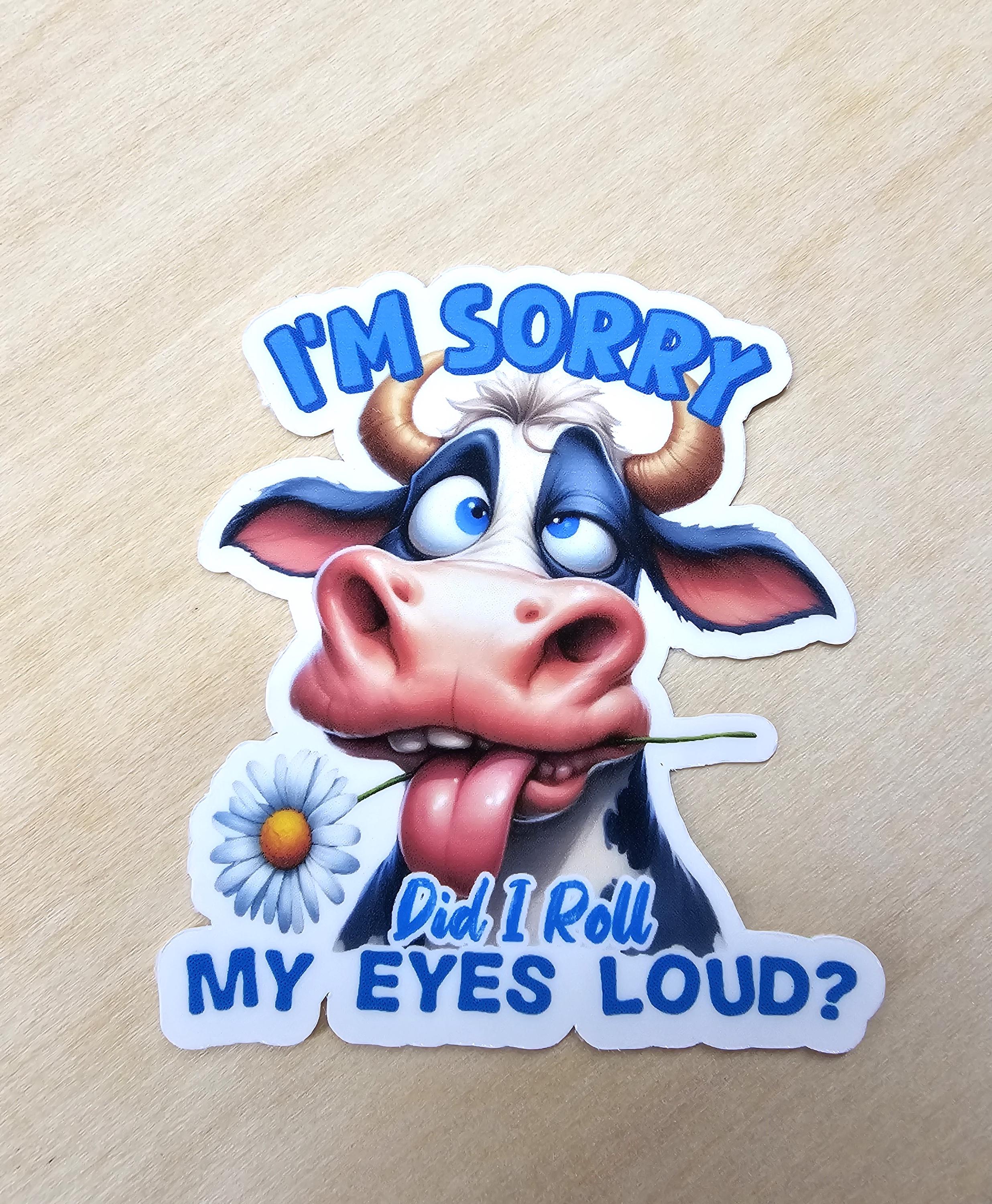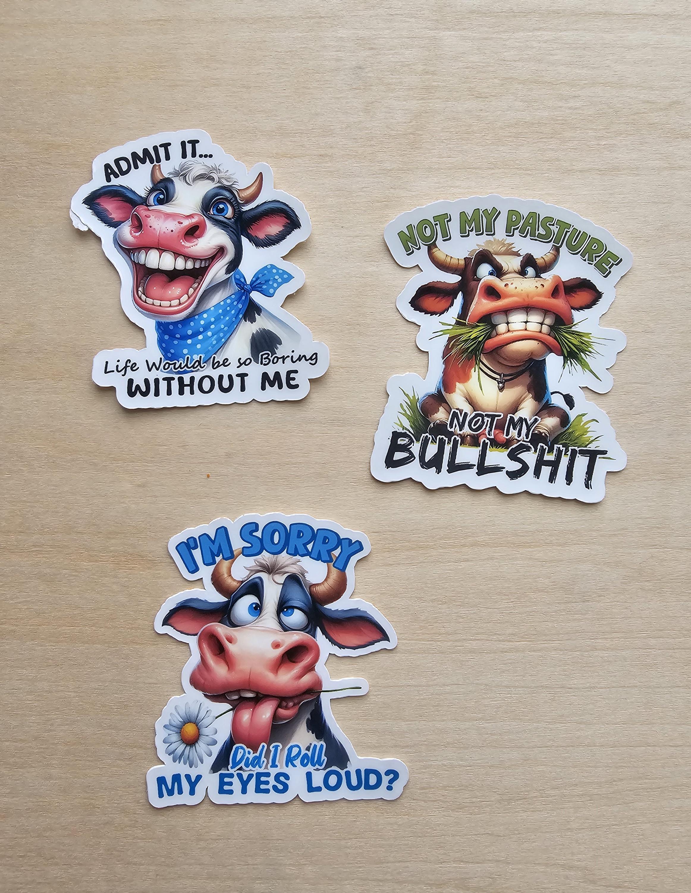 Set of 3 Funny Cow Silly Pasture Boring Life Roll Eyes Sorry Stickers
