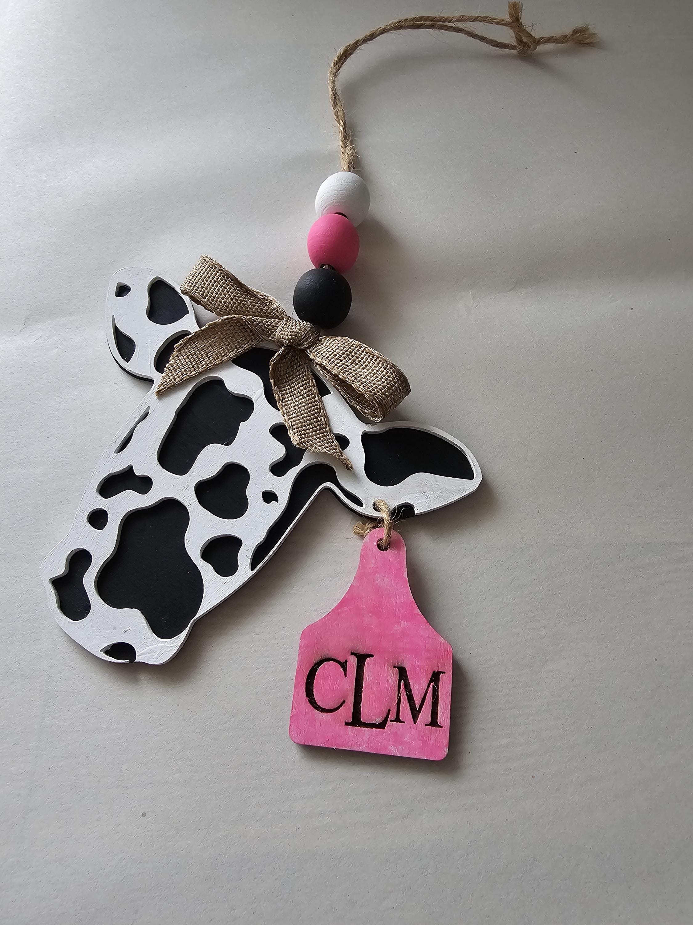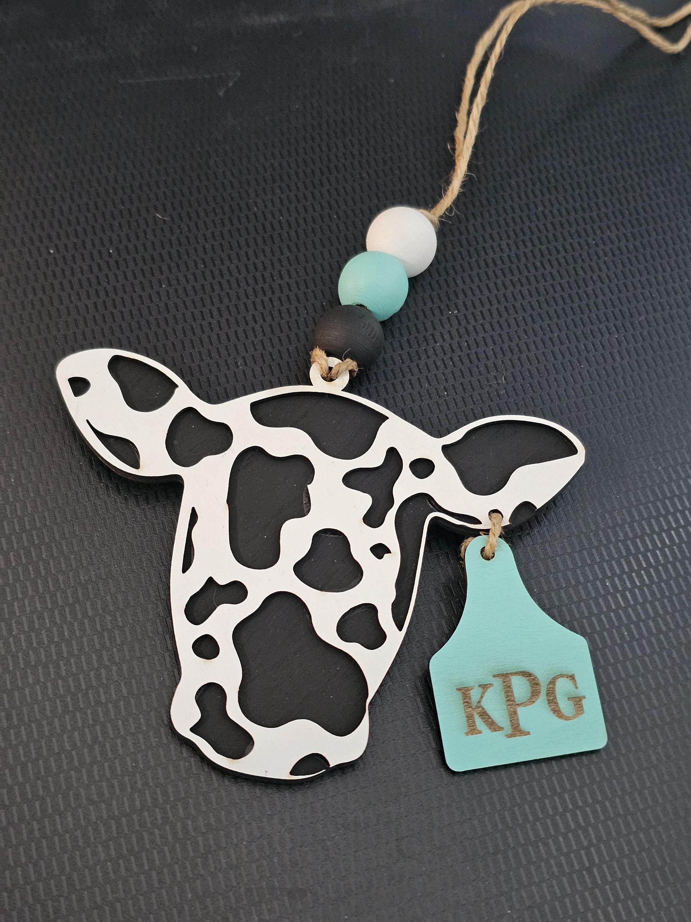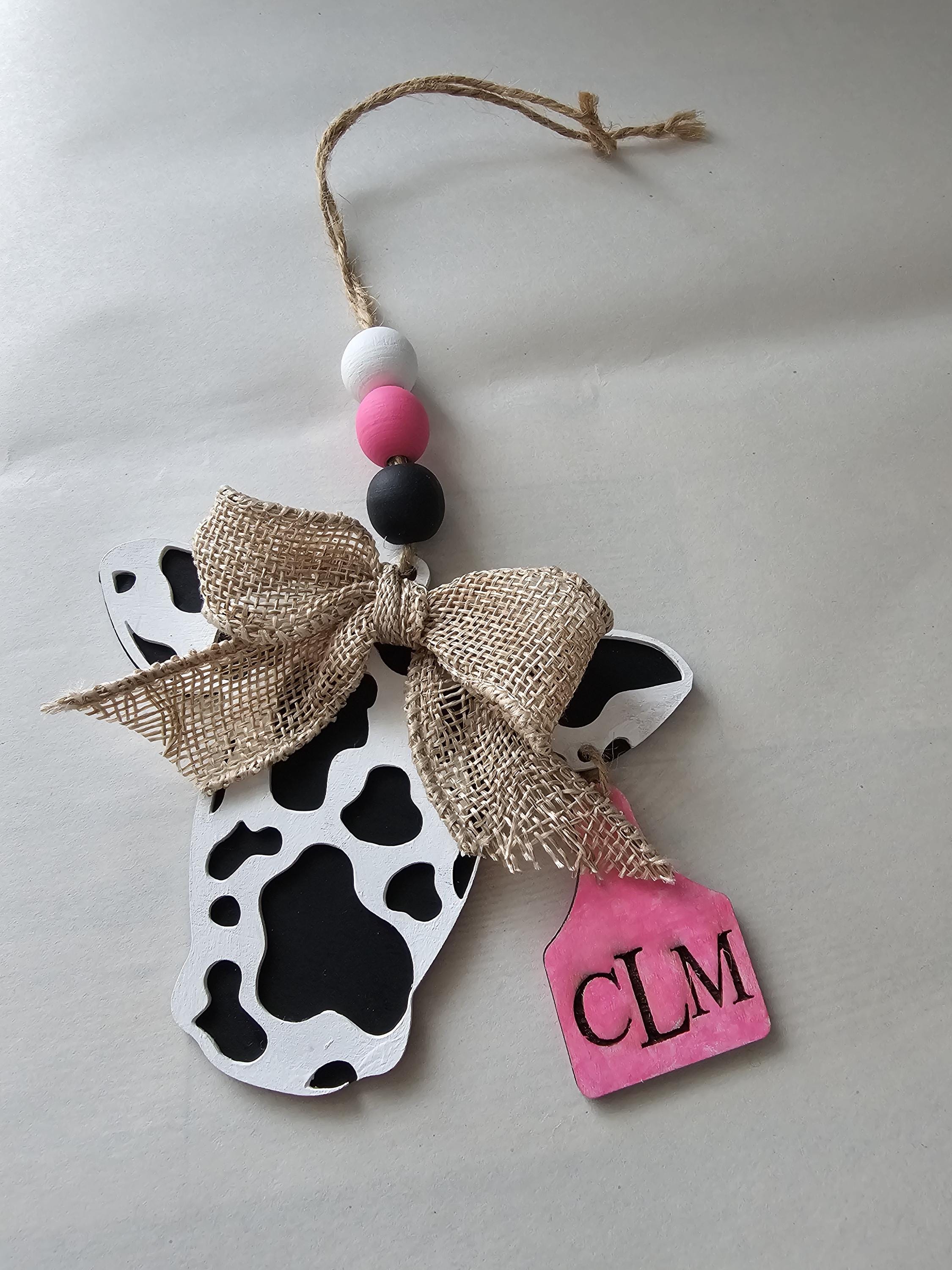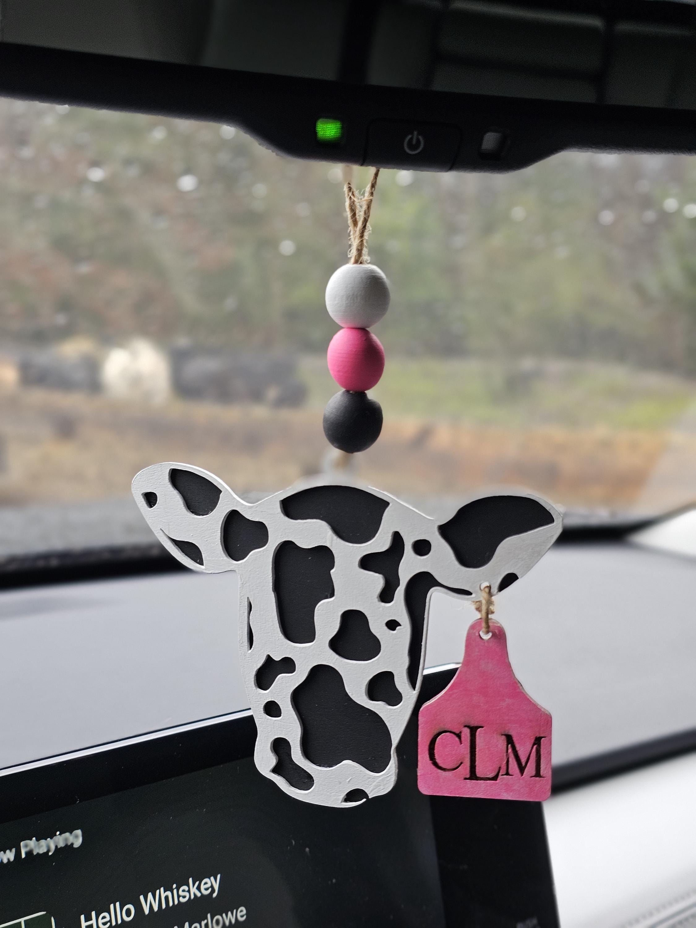 Personalized Cow Car Charm Initials Cow Tag, Rear view Mirror Accessories
