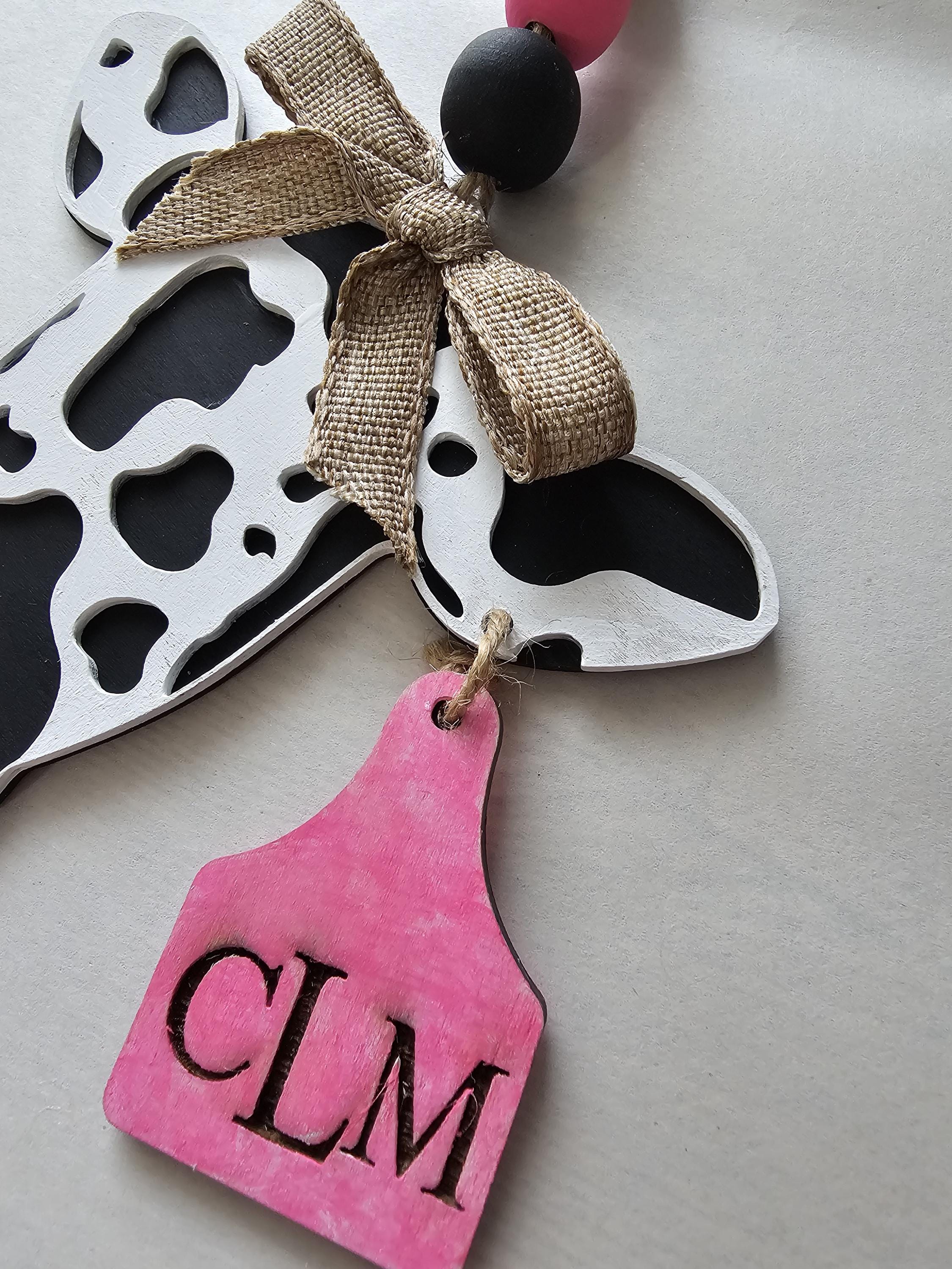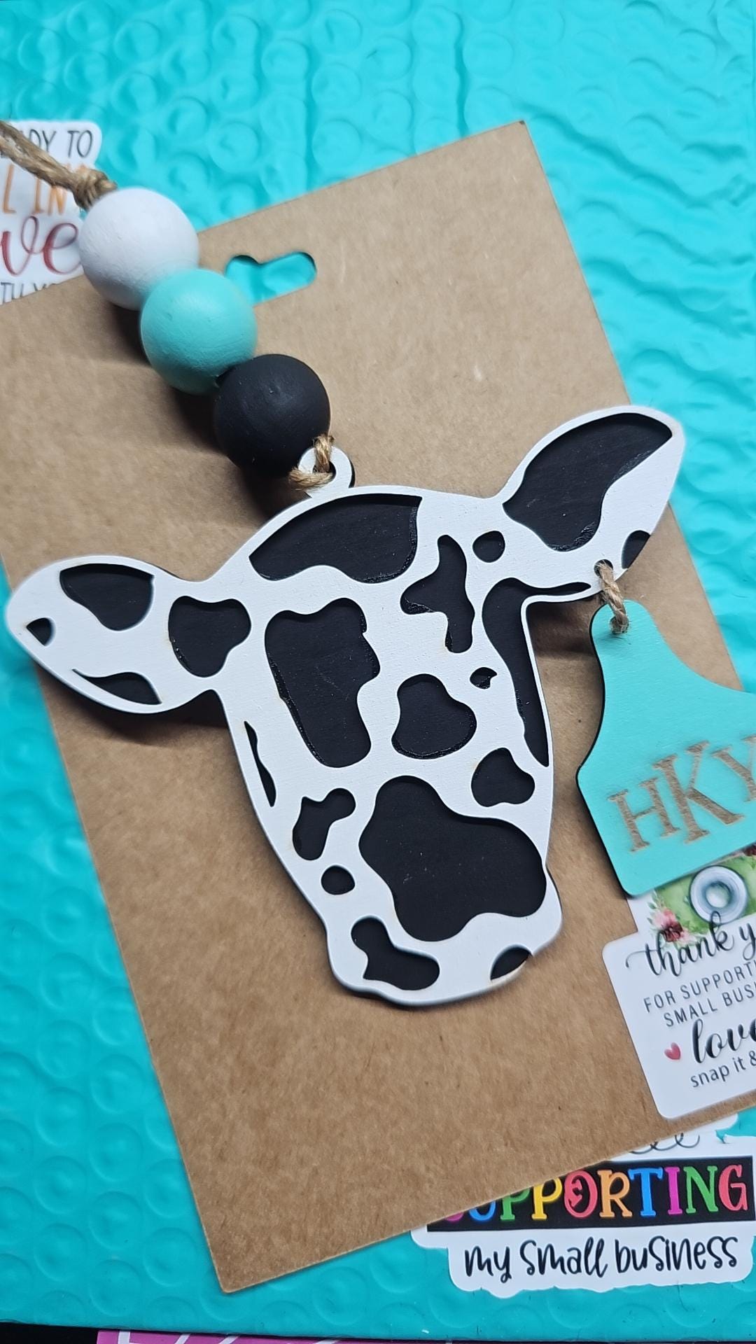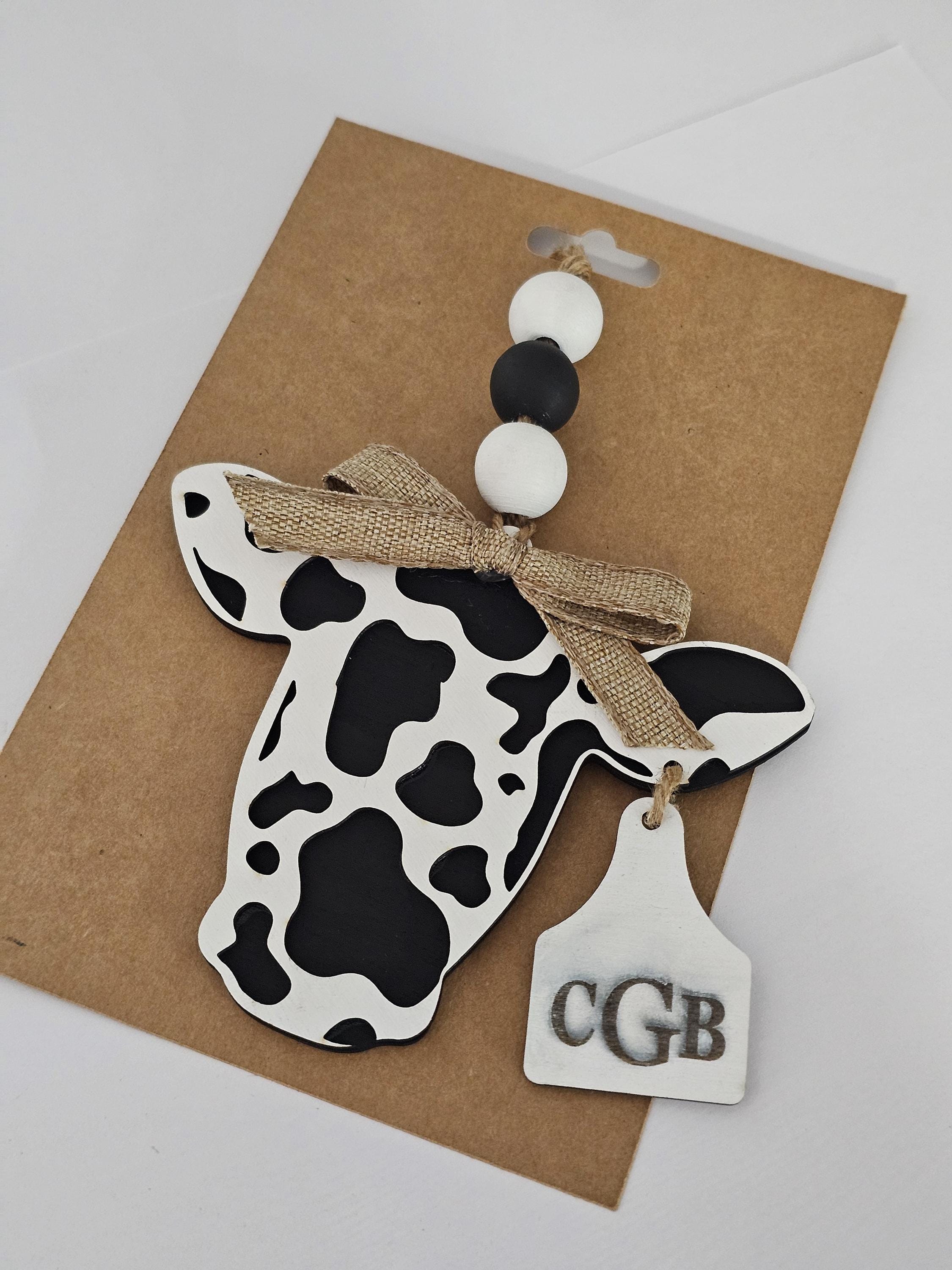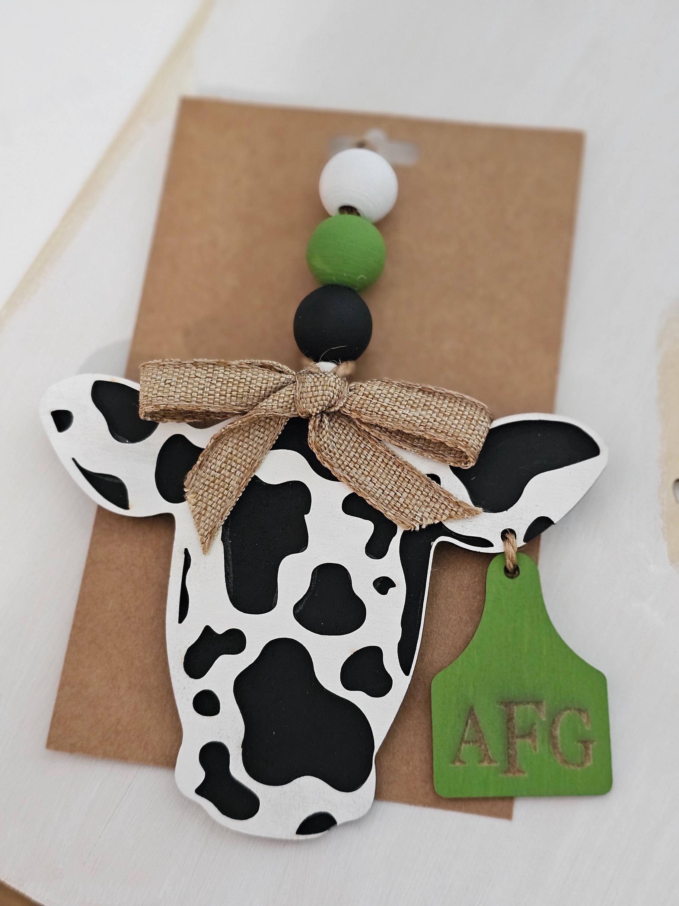 Personalized Cow Car Charm Initials Cow Tag, Rear view Mirror Accessories