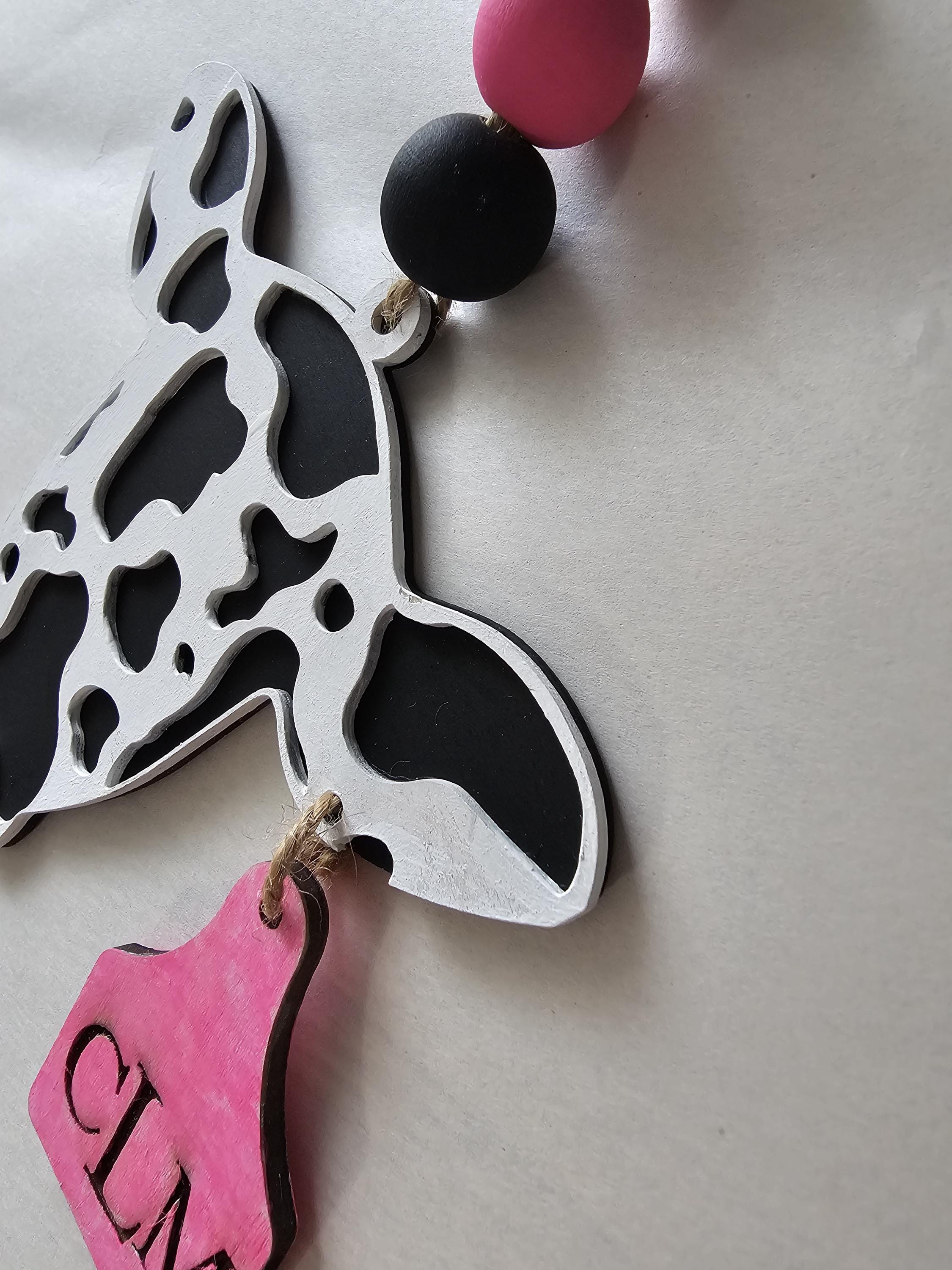 Dimensions: Cow head is 4.3x3.45 inches not including the beads and string. Bead colors will be as picture matching your color choice.