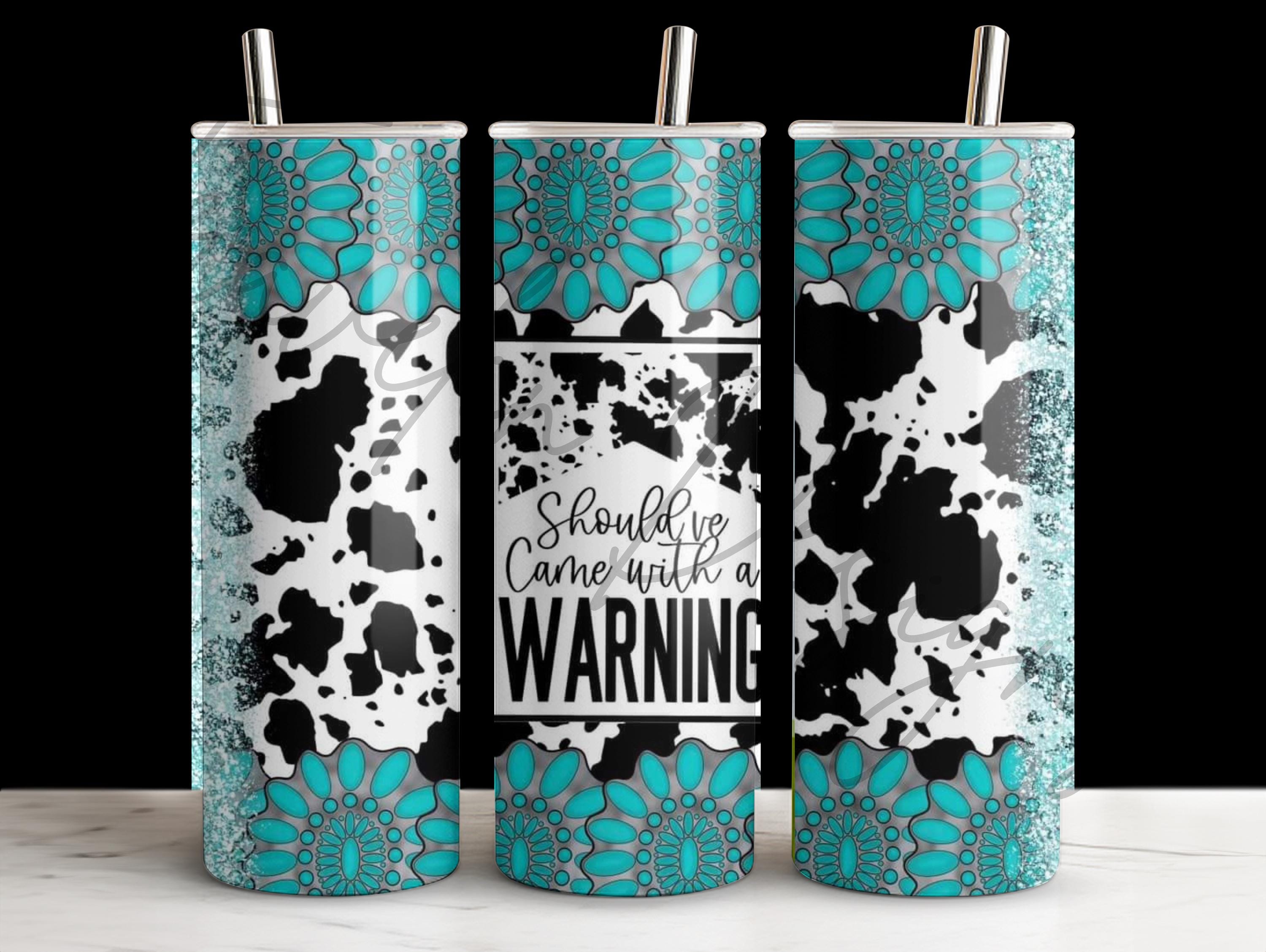 Should of Came with Warning Turquoise Cow Print Tumbler Gift Funny 20oz, Stainless Steel, Gifts for, Birthday Gift, Travel Mug, 20oz