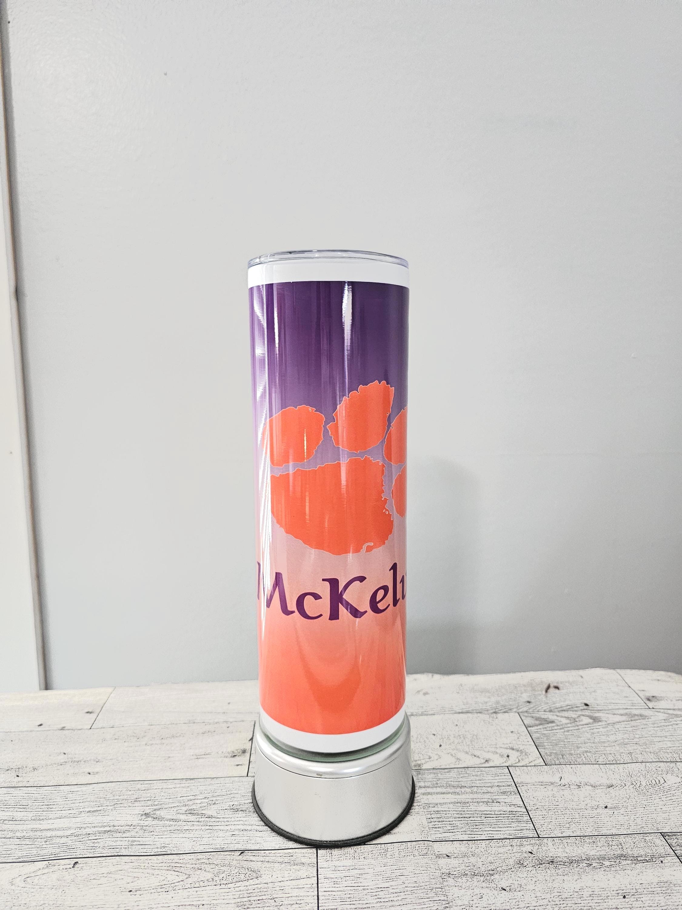 Purple Orange Fade Tigers Personalized 20oz, Stainless Steel, Gift, Birthday Gift, Clemson Travel Mug, Sports, Football, College, SC, Paw