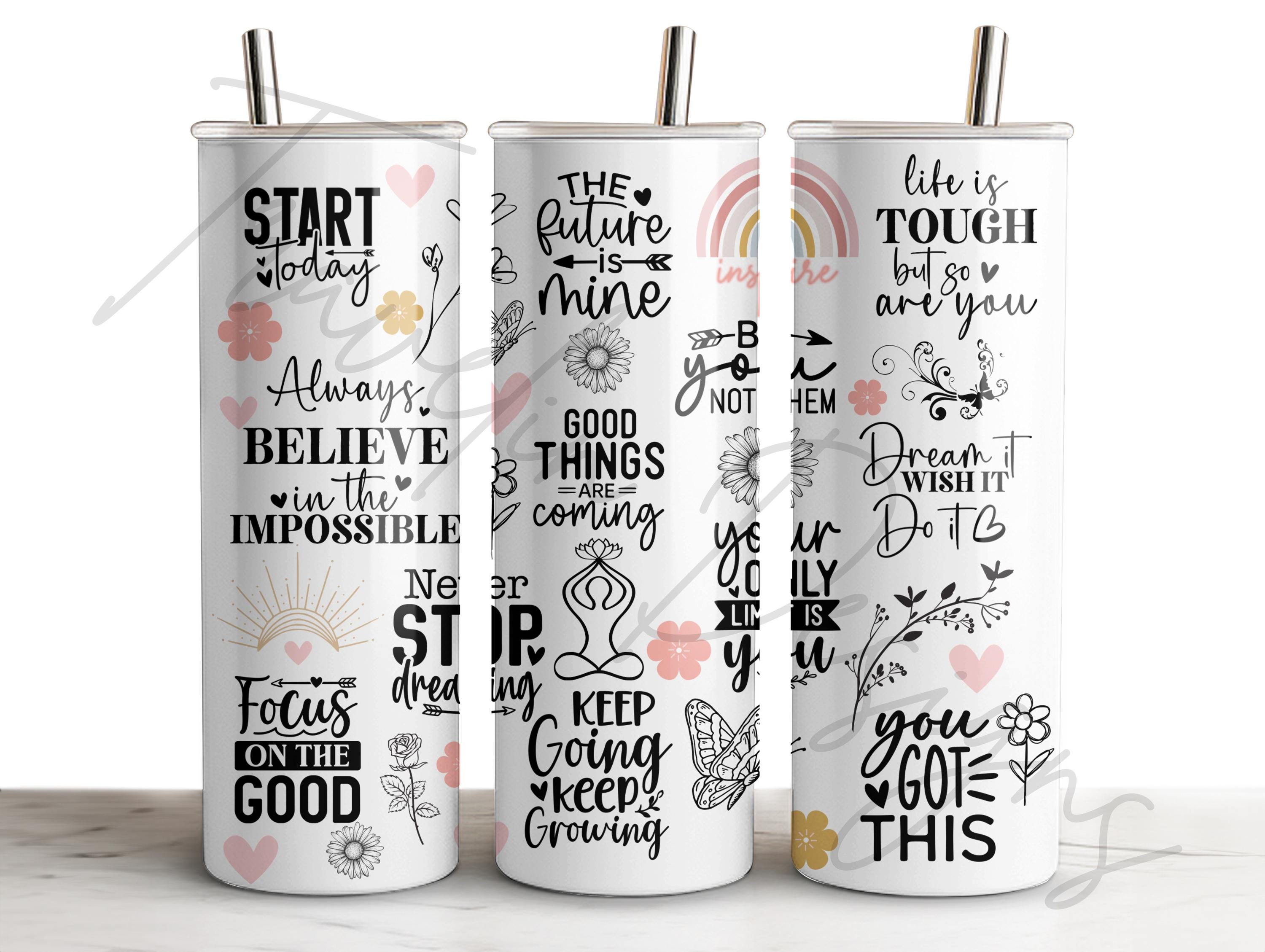 Mental Health Positive Daily Affirmations Self Love Dream Believe Motivational 20oz Stainless Steel Tumbler