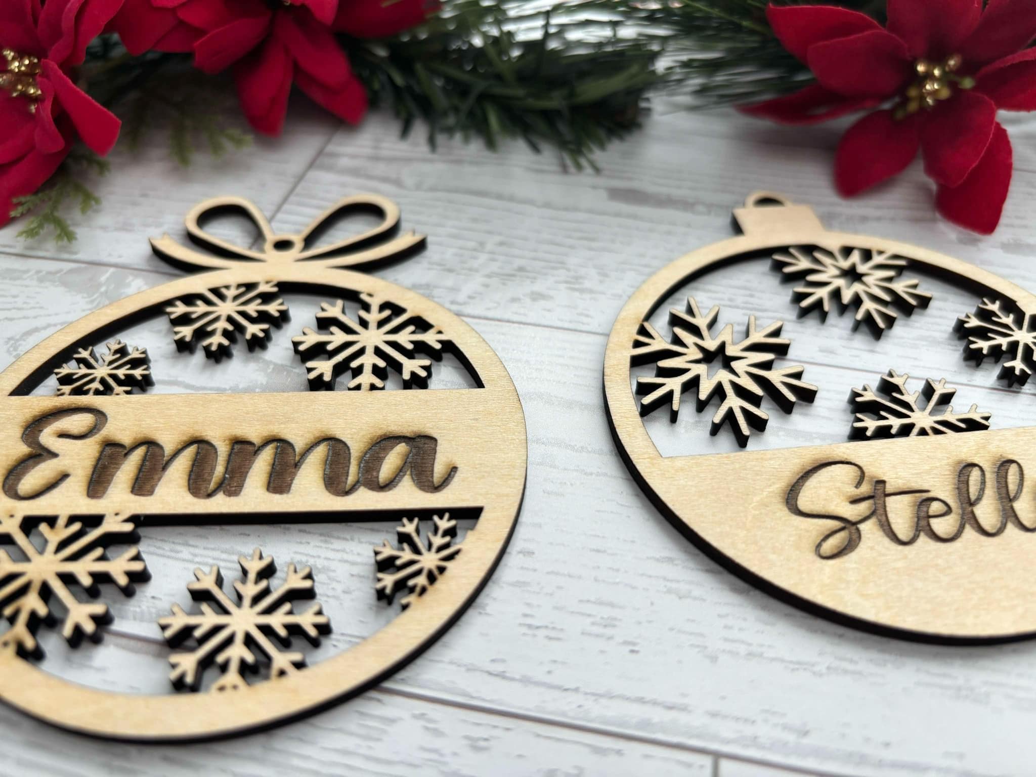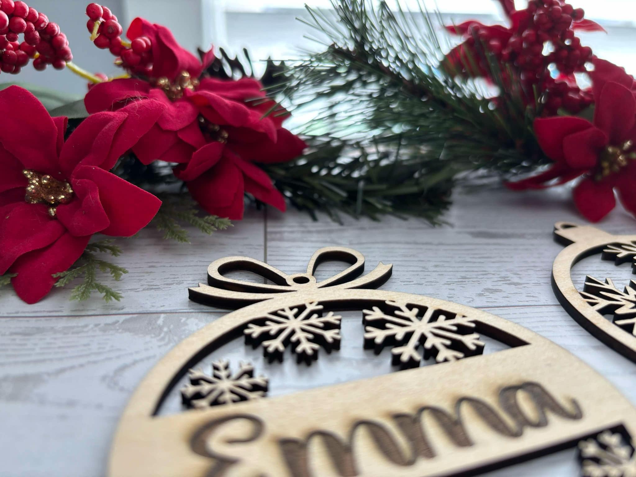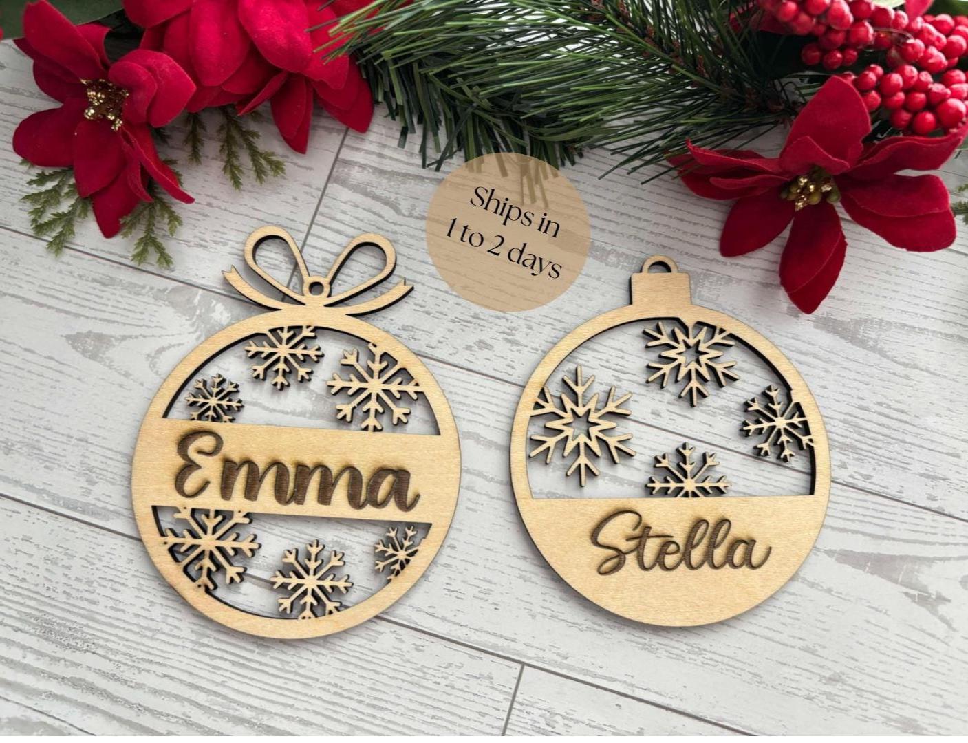 Personalized Wood Christmas Snowflake Ornament, Rustic Tree Decor
