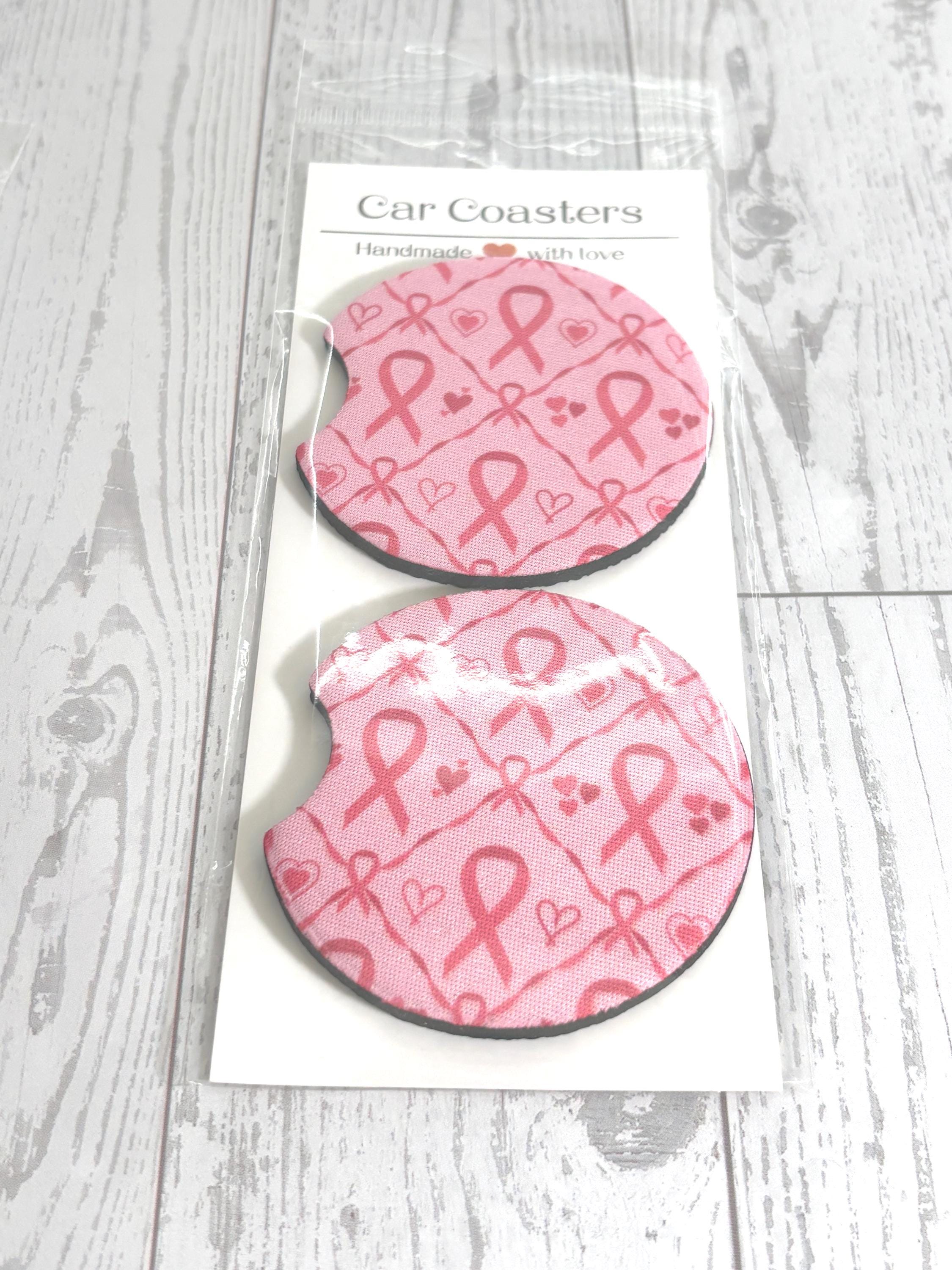 Breast Cancer Pink Bow Car Neoprene Cup Holder Coaster Gift