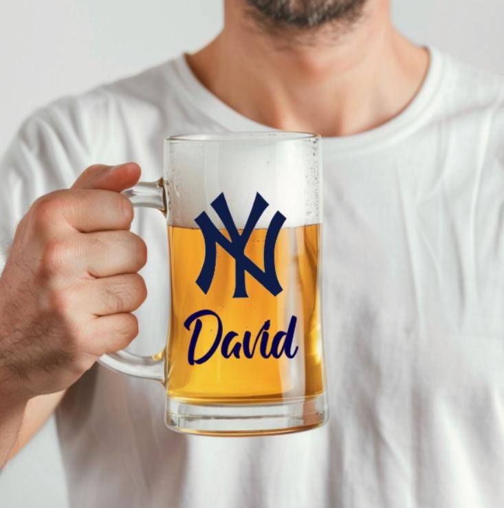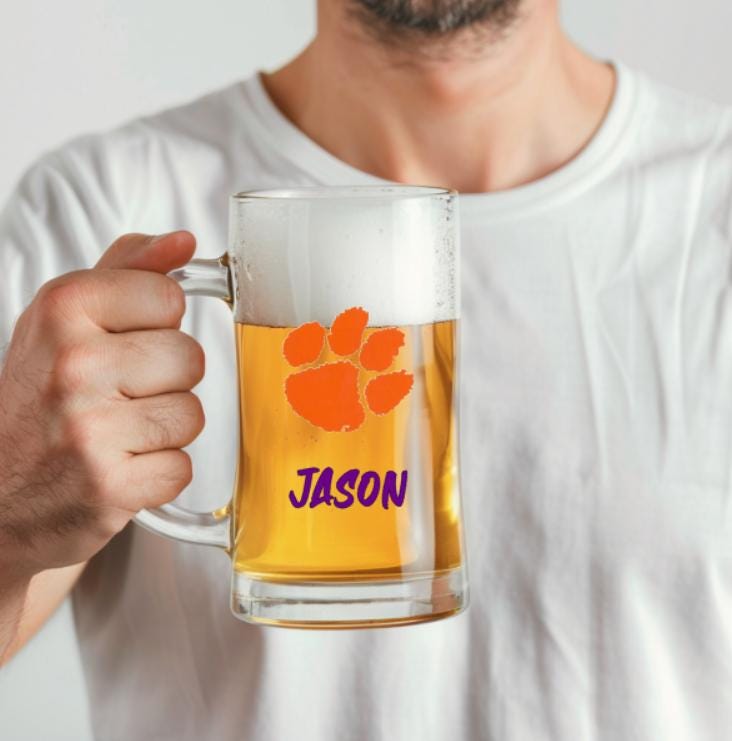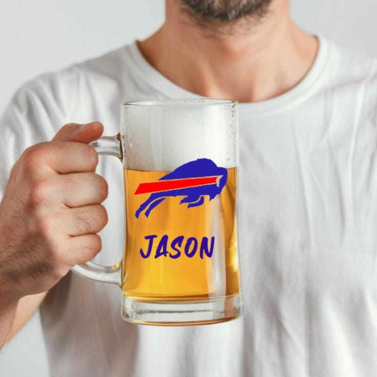 Heavy Duty Glass Beer Mug with Sports Team. Customize with name or just team. Shot glass will only have team. To make last longer glasses are not dishwasher safe. Item will be sent with tracking.