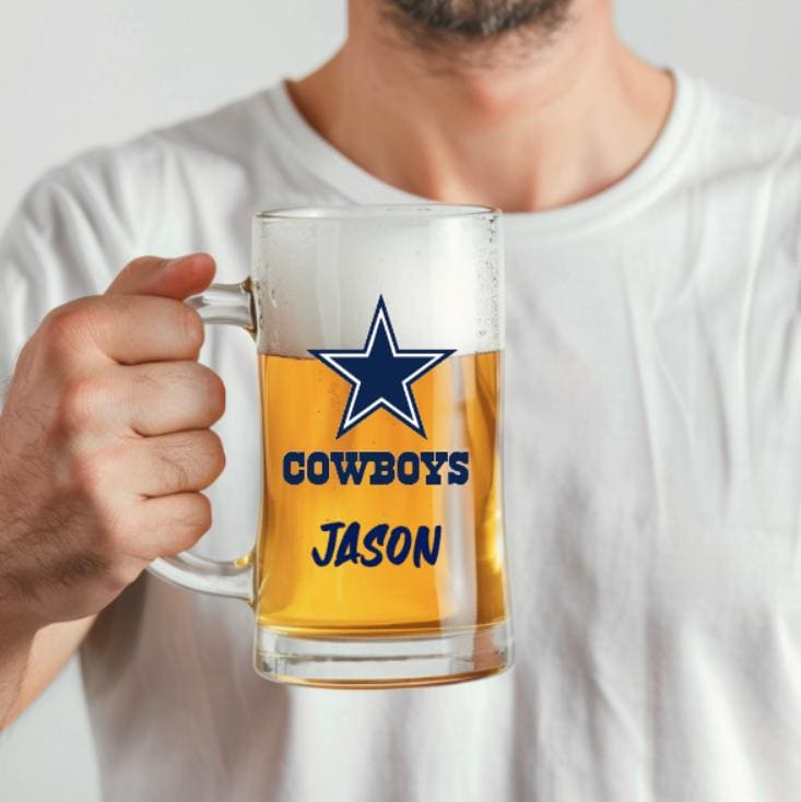 Beer Mug Sports Team Cowboys Personalized with matching Shot Glass