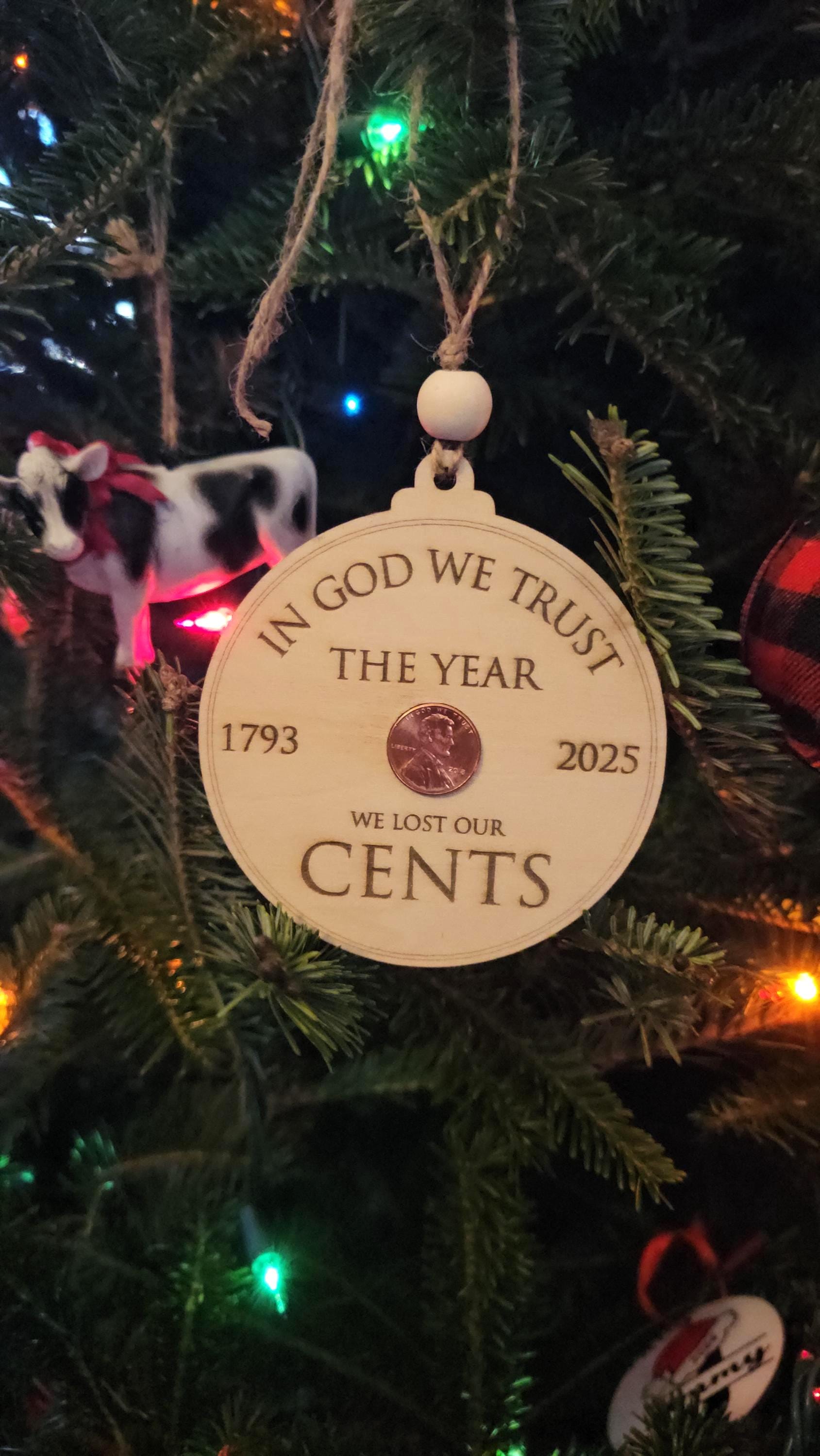 Penny Ornament Keepsake 2025 We Lost Our Cents In God We Trust