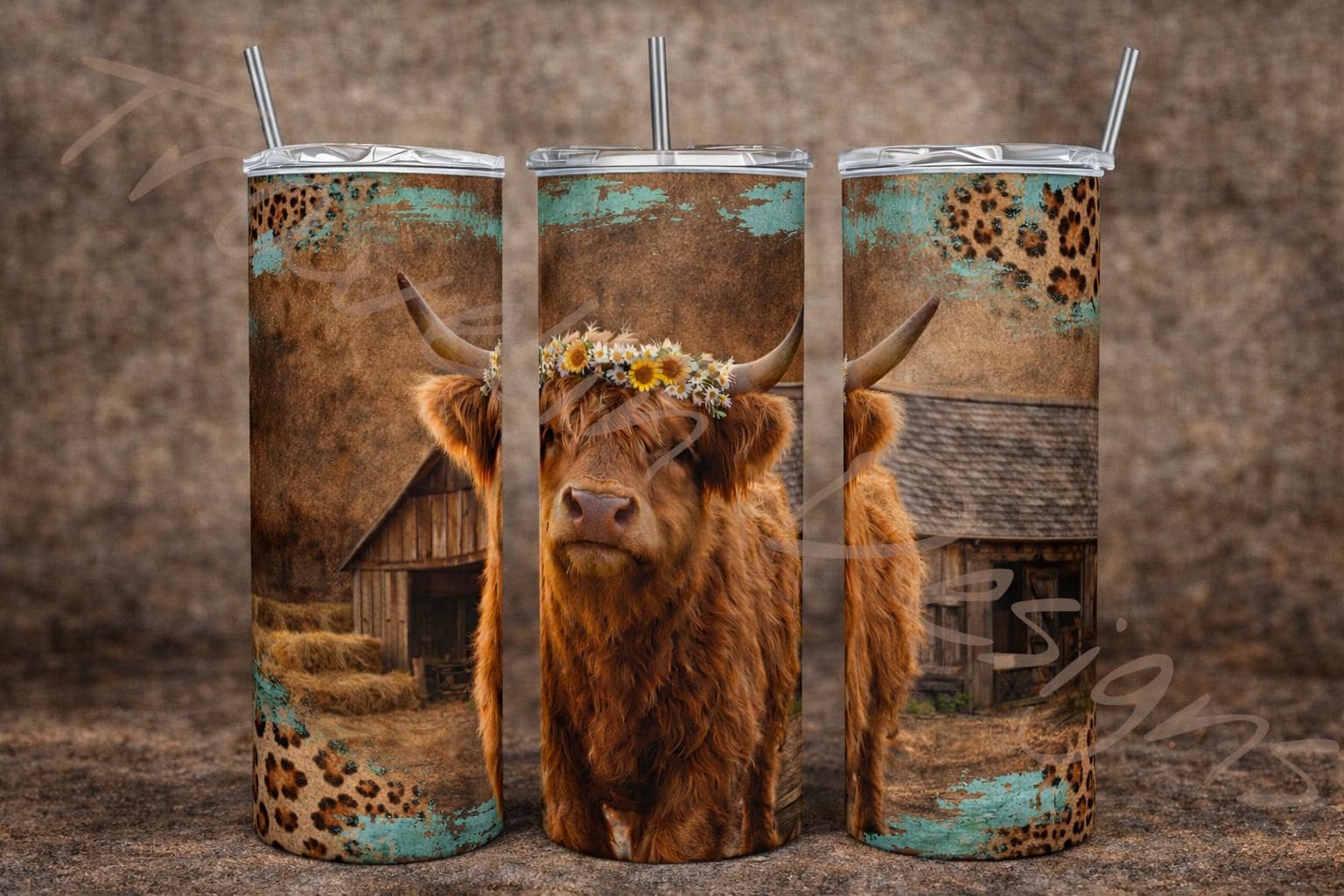 Highland Cow Turquoise Leopard Print Barn Cute 20oz Tumbler
